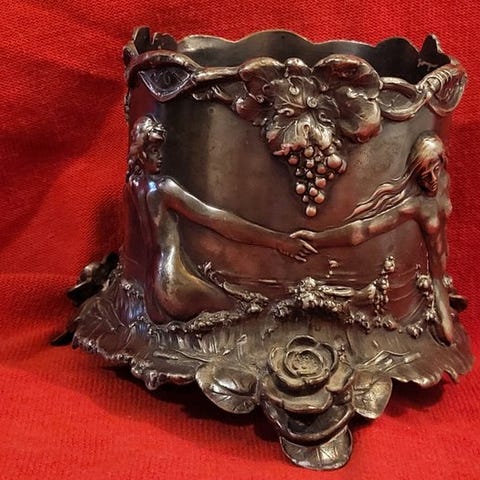 - Ornamentation: Bunden har to svaner, symboler på renhed og elegance. Den øverste sektion har et lobet design og håndtag prydet med bladagtige hvirvler.