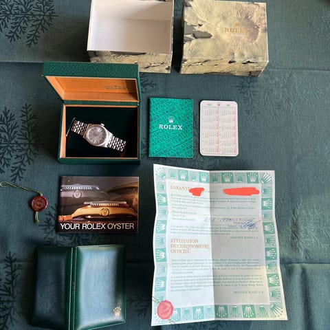 Herreur, Rolex, ROLEX GMT 16750 fra 1982 (iflg Klarlund). Fuldstændigt nyserviceret fra marts 2023 med servicebox og papirer samt pouch og papirer fra sidste gang det blev gjort. Der er tre ekstra led til lænken. Service koster iøvrigt en formue nu om dage. Desuden kan medfølge diverse kataloger samt 2023 kalender fra Rolex.