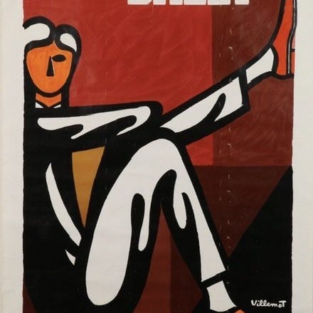 Dette værk skildrer en stiliseret kvindesilhuet, typisk for Villemot's ikoniske grafiske stil.