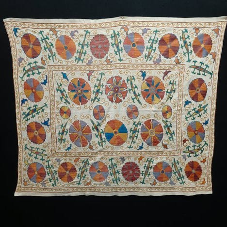 Deres design er hentet fra de gamle suzaní-stoffer fra Usbekistan – Centralasien, stoffer kendt som ældre håndværksværker syet med nåle ¨Suzan¨, deraf navnet, og de er broderet i silke- eller bomuldsgarn på bomuld.