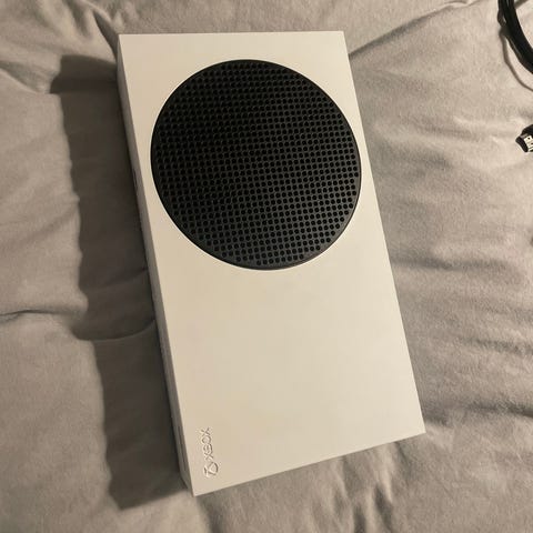 Xbox Series S konsol med to trådløse controllere i hvid og sort. Konsollen er digital og anvendes til spil, streaming og underholdning. De medfølgende controllere har standard Xbox-knaplayout med styrepind, retningsknapper og funktionsknapper. Velegnet til brug med Xbox Series S spil og tjenester, samt kompatibel med understøttede tilslutningsmuligheder til tv eller skærm.