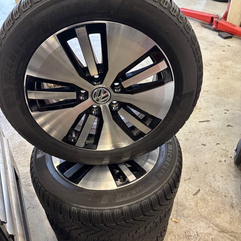 Originale Kia E-Niro 16” fælge med helårsdæk i super god stand. Dækkene har kun kørt 5000km og er fra 2025.