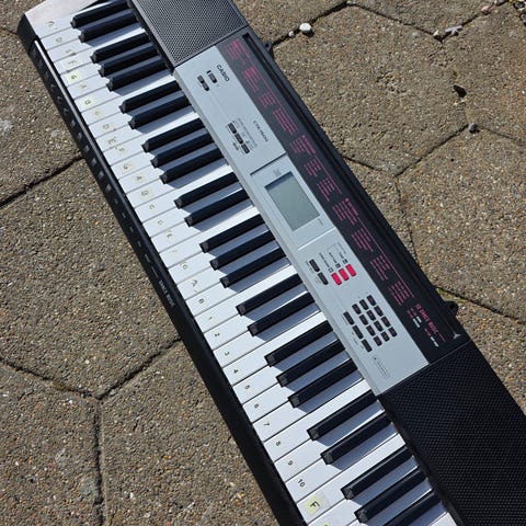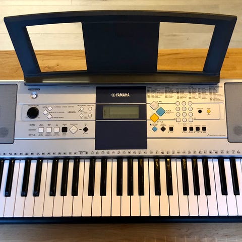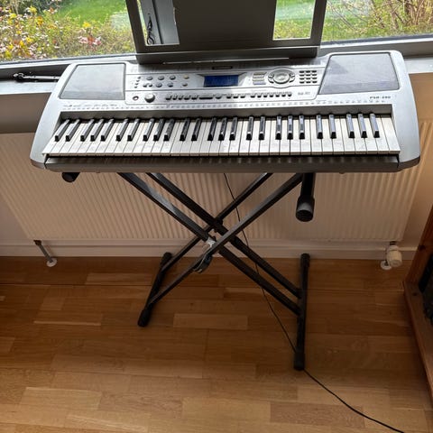 Yamaha PSR-175 keyboard med 61 tangenter i sort kabinet. Modellen har indbyggede højttalere, display og forskellige funktionstaster til lydvalg, rytmer og indlæringsfunktioner (Lesson). Der er tilslutninger til strømforsyning, hovedtelefoner samt MIDI-ind- og udgange. Egnet til øvning, undervisning og generel musikudøvelse i hjemmet eller øvelokalet.