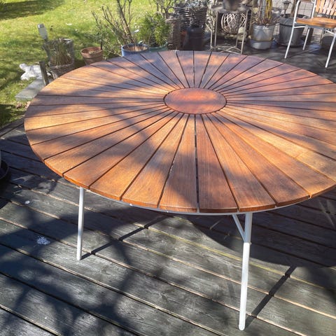 Kerteminde Ø150 havemøbelsæt med 6 stole teak/hvid