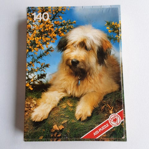 Sødt puslespil med hundehvalp med store brikker. Komplet og i fin stand. Det færdige mål er 49x36cm.