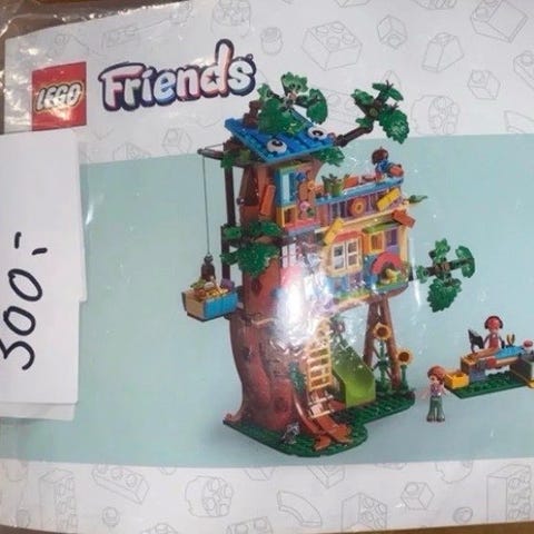 LEGO Friends byggesæt med flere små scener og tilbehør. Sættet indeholder blandt andet minidukker, mindre byggeelementer samt en lysklods, der kan lyse, som vist på billederne. Der medfølger to byggevejledninger, mærket som hæfte 1 og 2, der viser, hvordan de forskellige dele samles. Sættet egner sig til leg med figurer og små hverdagsscener i LEGO Friends universet.