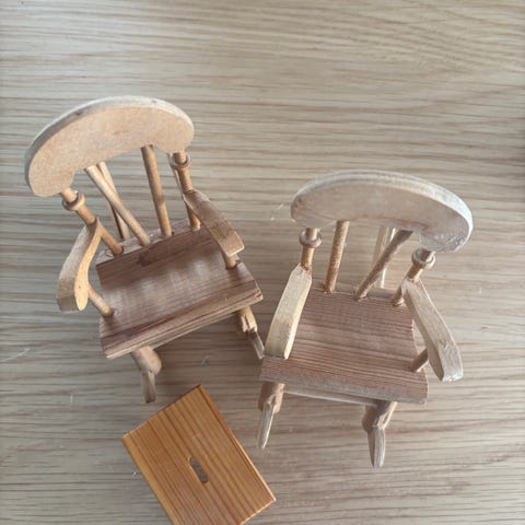Dukkehus-møbler, gyngestol, lille plastik dukkehus gyngestol brugt men fin stand se billederne kan sendes med gls + porto