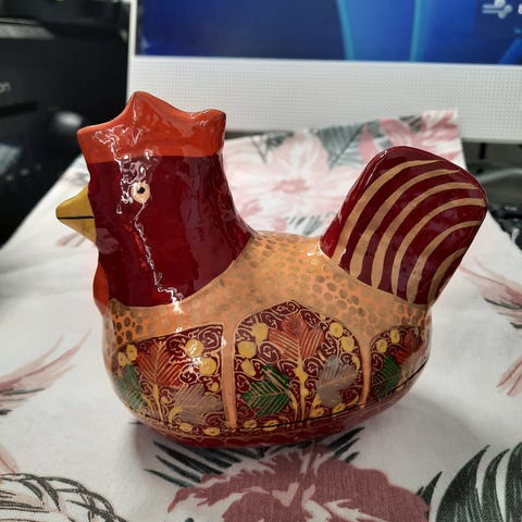 Håndlavet og dekoreret med et mylder af farverige blomster – næsten som et lille univers i sig selv 🌸