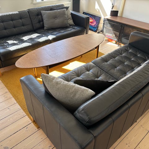 Sofa, ekstra sofapuder og europalle medfølger samlet i prisen.