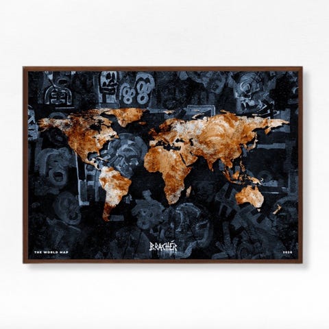 Plakaterne passer godt sammen som et sæt og giver en stærk visuel effekt på væggen.
