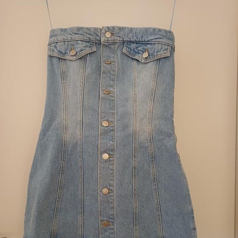 Kort blå let nederdel med to skrå lommer og nitter i str S