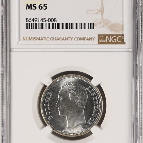 Rigtig flot stor sølvmønt,5 bolivares 1926 Venezuela