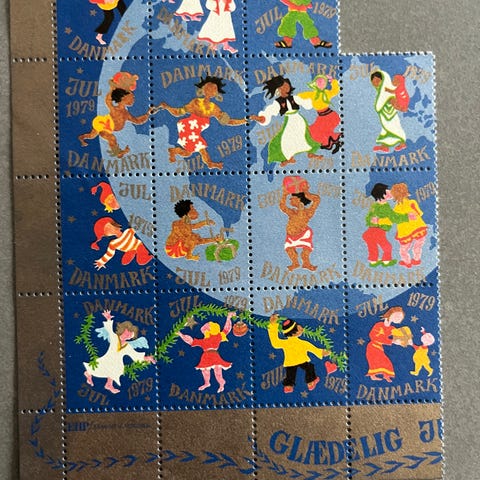Mindre samling af julemærker sælges hele ark 25.- mindstesalg 100.-