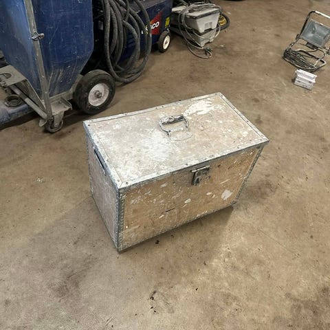 Flightcase rullevogn med teleskophåndtag og rumdeler i sølvfarvet overflade. Kassen har hjul og udtrækkeligt håndtag, så den kan trækkes som en trolley. Låget er aftageligt og lukkes med metalbeslag og låsespænde. Indvendigt er der en lodret rumdeler, som skaber to separate opbevaringsrum. Velegnet til transport og opbevaring af værktøj, udstyr eller materialer, der kræver en robust og hård kasse.