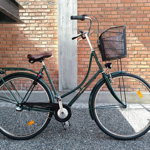 Cyklen har en klassisk oprejst siddestilling og er velegnet til bykørsel.