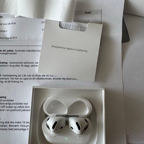 Jeg sælger disse AirPods 4, da jeg ikke får brug for dem, de er helt nye, og har kun været brugt to gange😀