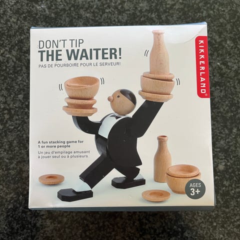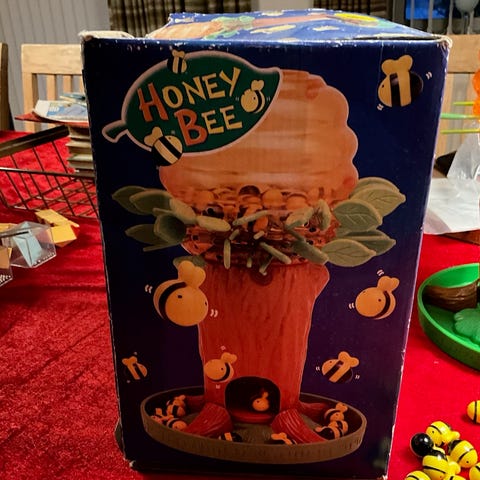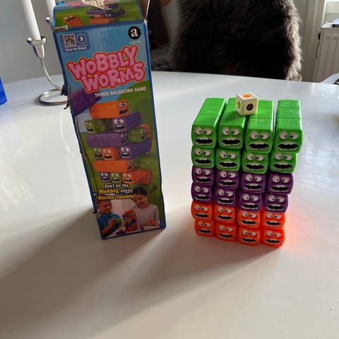 Tomy Tumblin’ Monkeys spil. Spillet består af et gennemsigtigt plasttræ med grønne palmeblade, farvede plastpinde og små plastikaber, som hænges på pindene inde i træet. Spillerne skiftes til at trække pinde ud, så nogle af aberne falder ned gennem træet. Velegnet som familiespil og til børns træning af finmotorik og tur-tagning. Spillet kan typisk spilles af flere deltagere samtidig.