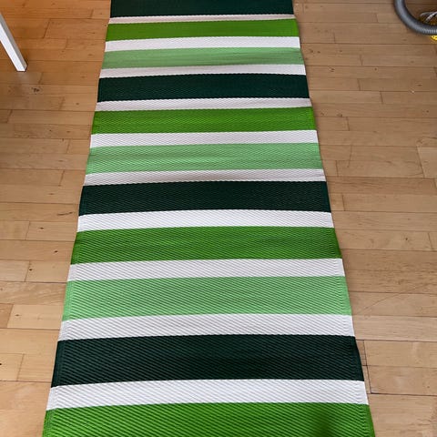 Tæppet måler 115x188 cm og er i meget pæn stand.