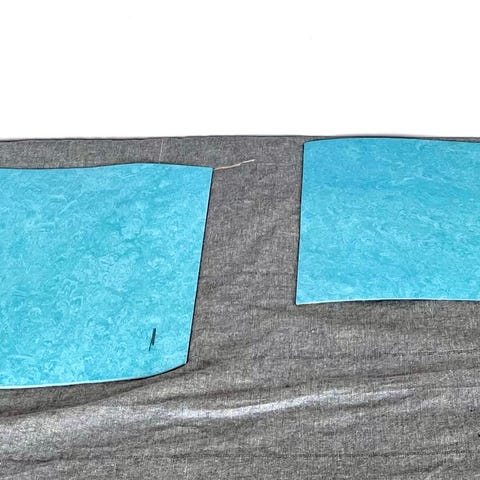 En pakke med den brune 7 stk fliser og den blå 7 stk fliser - ikke pakket ud