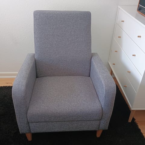 Pæn Ikeastol med antrasitgråt betræk og lyse træben.