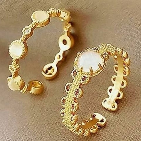 Fin og justerbar ring i guldlook sælges. Den passer både til hverdag og fest.