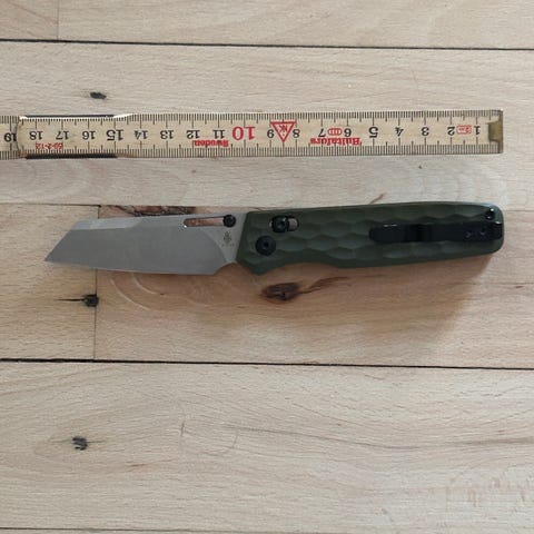 Foldekniv med sort skæfte og sølvfarvet klinge