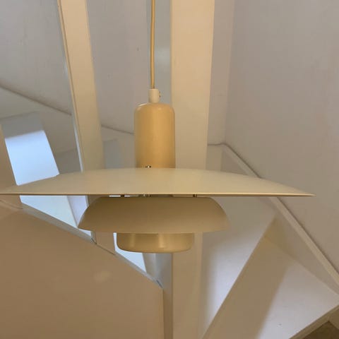 Lamp by Christian Hvidt, « Trapez » for Nordisk Solar, from the 1980s. In painted metal, has a red circle inside. Good condition, no hits or big scratches, but of course normal patina and aging.