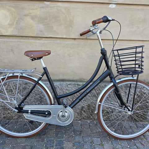 Cyklen har en klassisk oprejst siddestilling og er velegnet til bykørsel.