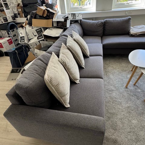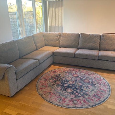 6 pers. hjørnesofa - mål: 200x300cm og dybden er 90cm. Den er pæn og velholdt. Der har ikke været hund eller kat i sofaen eller andre dyr. Sælges grundet flytning