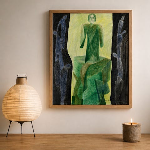 Billedet er indrammet i enkel træramme med passepartout, som giver et roligt og tidløst udtryk.