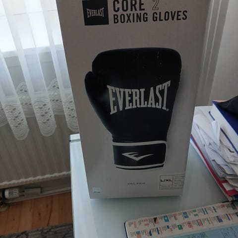 Everlast boksehandsker i sort og grå med gule detaljer. Handskerne har lukning med velcrorem omkring håndleddet for justerbar pasform og støtte. Ydersiden er i glat syntetisk materiale, og indersiden har mesh-paneler for ventilation. Velegnet til kampsportstræning som boksning og lignende discipliner.