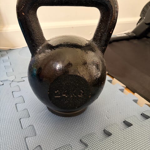 De tre competition kettlebell er fra Kettlebellshop og består af 12 kg (blå), 16 kg (gul) og 20 kg (lilla). De savner et hjem , hvor de igen bliver brugt til daglig træning.