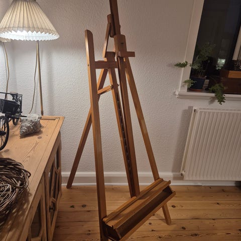 Speciel staffeli/udstillingsstaffeli i mørkt træ m/ metal holdere. Mrk. Spekter.