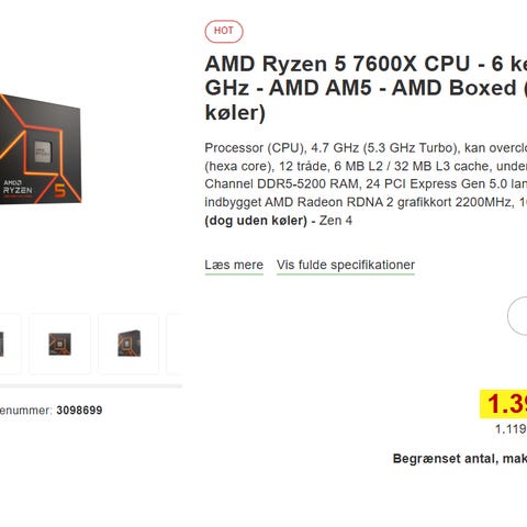 Garanti udløbet på Ryzen 7600X, men den er i perfekt stand.