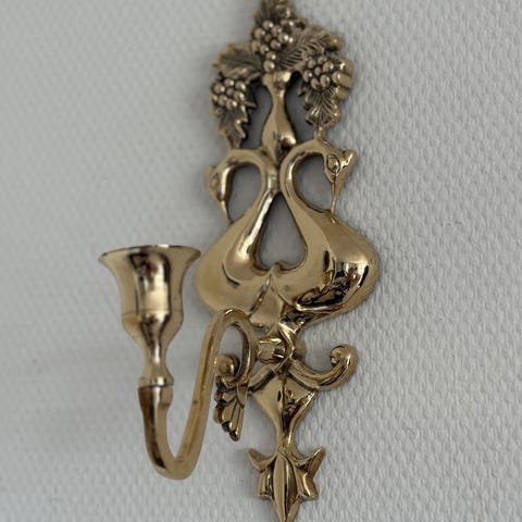 Sælger denne utroligt flotte og detaljerede vægstage (spejllampet) i massiv messing. Den er udført i klassisk rokoko-stil med fine motiver af en putto (lille engel), blomster og ornamenter.