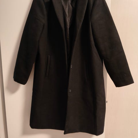 Sort frakke mærke French til kvinder i størrelse XXL. Frakken er sort og fremstillet i uld. Modellen har klassisk reverskrave, knaplukning foran og sidelommer. Indvendigt er der glat, mønstret foer for øget komfort. Velegnet som yderbeklædning i køligere vejr.