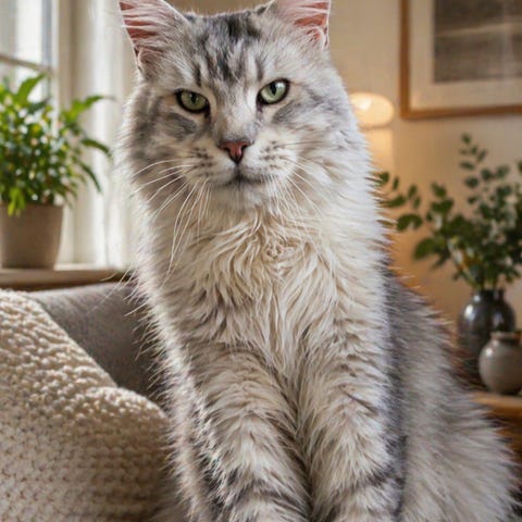 Eller er han den sødeste og sjoveste kat med enormt godt sind og elsker at putte og være med i alt men fortager sig. Han er vant til der kommer små børn jævnligt og elsker at være med i lege. Han er halv Maine cool og der skinner tydeligt igennem på hans sind.