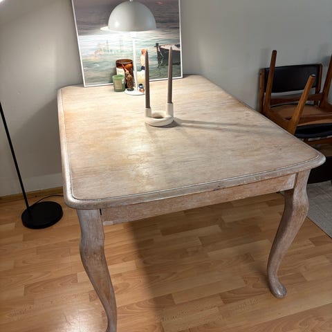 Bordet har almindelige brugsspor – især i overfladen, hvor der ses lidt mærker/slid, men det er stadig pænt og fuldt funktionelt.
