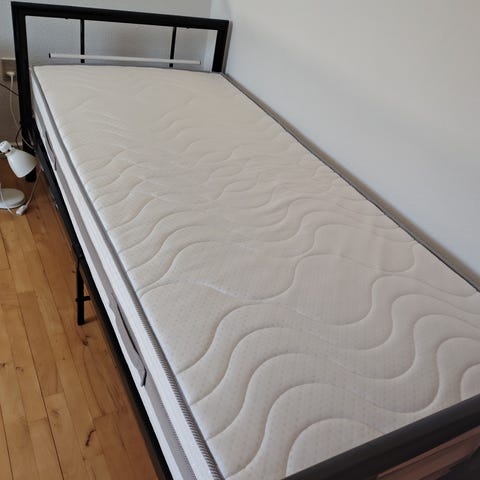 Meget sparsomt brugt under 1 år gl.meget pæn stand 25 års garanti kvitteringer med med indbygget topmadras 90×200