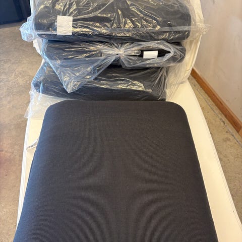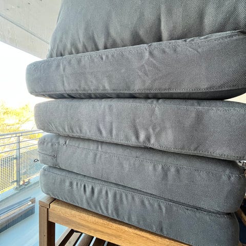 4 hynder (2 sæt) til havestole. 45 x 45 cm.