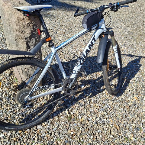 Fin Giant mtb sælges. 27 gear/hydrauliske bremser. Kunne bruge en ny kæde og en let justering af gearene. Gode dæk. Prissat derefter. Skærmsæt og spirallås medfølger.