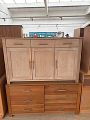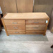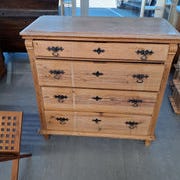 Massiv trækommode med 3 skuffer og 2 skabe, elegant design med metalgreb. Ideel til opbevaring i stuen eller gangen.- Bemærk at mail, chat og beskeder ikke besvares, og varen skal købes på knappen "Gå til varen". Efter reservering af varen har du 10 dage til at afhente den i den butik, varen er på lager i.