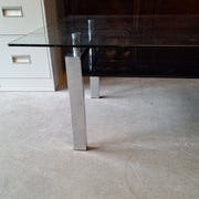Rektangulært glasbord med moderne metalstel og en elegant, minimalistisk stil, perfekt til stuen eller kontoret. Sort uden punktum.- Bemærk at mail, chat og beskeder ikke besvares, og varen skal købes på knappen "Gå til varen". Efter reservering af varen har du 10 dage til at afhente den i den butik, varen er på lager i.