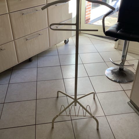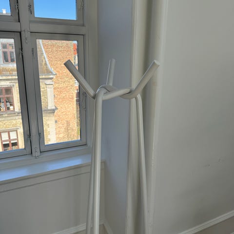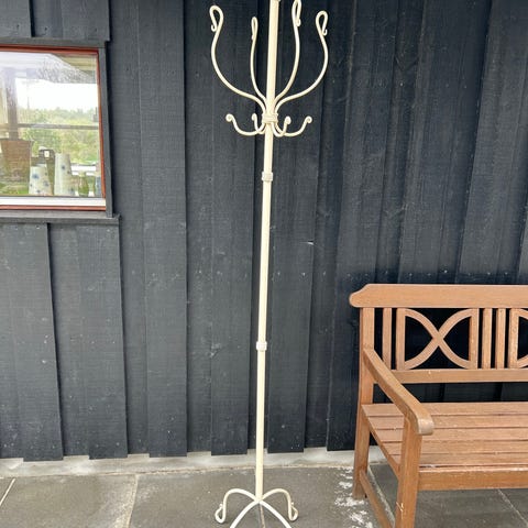 Elegant tøjstativ i hvidmetal med bøjelige arme til ophængning af jakker og accessories. Stilrent design, der passer ind i enhver indretning.- Bemærk at mail, chat og beskeder ikke besvares, og varen skal købes på knappen "Gå til varen". Efter reservering af varen har du 10 dage til at afhente den i den butik, varen er på lager i.
