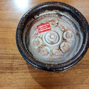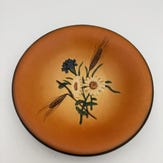 Rund keramisk skål med en tofarvet overflade i brune nuancer og indgraverede, geometriske mønstre. Ideel til servering eller dekoration.- Bemærk at mail, chat og beskeder ikke besvares, og varen skal købes på knappen "Gå til varen". Efter reservering af varen har du 10 dage til at afhente den i den butik, varen er på lager i.