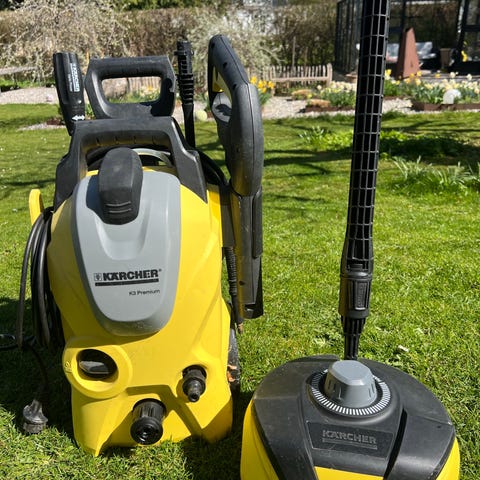 Kärcher WRE 18-55 ukrudtsfjerner (tror det er den model) til rengøring af fliser og andre udendørs overflader. Maskinen har roterende børstehoved med gule børster, der er velegnet til fjernelse af ukrudt og snavs mellem fuger. Leveres med Kärcher 18 V batteri, som monteres i håndtaget. Egnet til brug i have, indkørsel og på terrasser, hvor der er behov for mekanisk fjernelse af ukrudt og mos fra hårde belægninger.