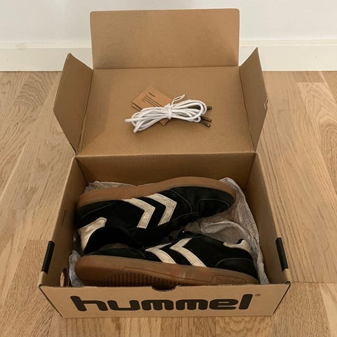Hummel sneakers til børn, unisex, i str. 31. Skoene er i en mørkeblå farve med hvide Hummel-vinkler på siderne. Overdelen fremstår som tekstil/mesh med syntetiske detaljer, og sålen er lys med gummimønster under bunden. Lukkes med elastiksnørebånd og velcrostrop over vristen, hvilket gør dem nemme for barnet selv at tage af og på. Velegnet som hverdagssko eller til let aktivitet for både drenge og piger.
