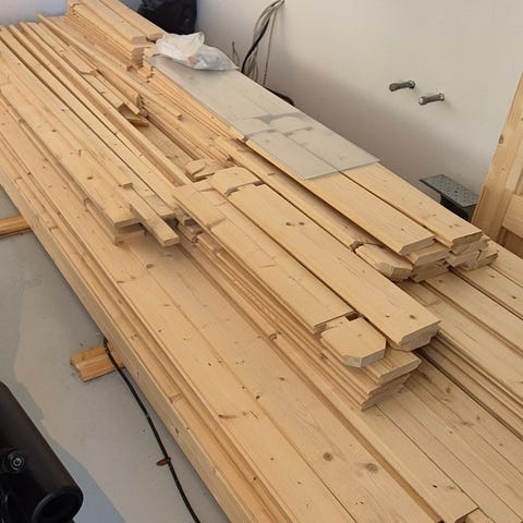 Massivt trægulv gulvbrædder i lyst træ. Brædderne fremstår som parket- eller stavlignende elementer med fer og not langs kanterne, velegnet til lægning som indendørs trægulv. Egnet til renovering eller nyetablering af gulv i bolig, fx stue, værelser eller gangarealer. Antal, mål og træsort bør kontrolleres ved afhentning eller efter aftale med sælger.