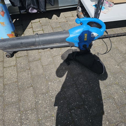 Park løvsuger med opsamlingspose. El-drevet haveværktøj til opsamling af blade og mindre haveaffald. Enheden har bærestrop og aftagelig stofpose til opsamling. Velegnet til brug i have, indkørsel og på terrasse, hvor der er behov for at fjerne tørre blade og småt affald fra hårde overflader og græsarealer.