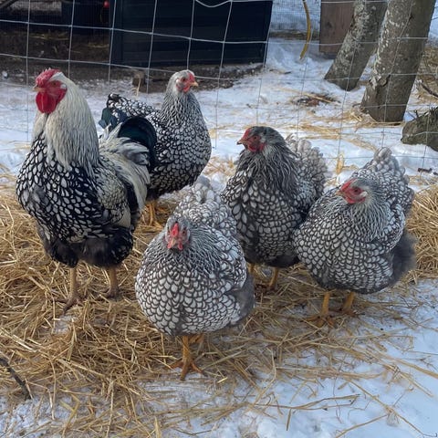 Hønsene lægger æg som dem på det første billede og det vil kyllingerne også komme til